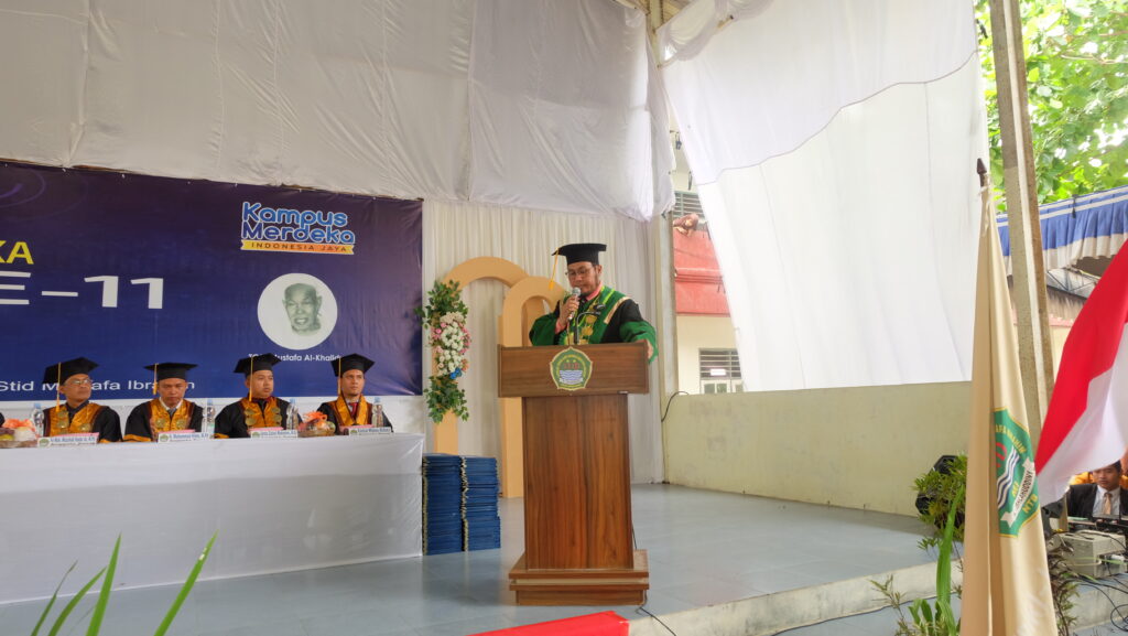 Prof. Dr. H. Masnun, M.Ag pada saat menyampaikan sambutan Wisuda STID Mustafa Ibrahim Al-Islahudinny.