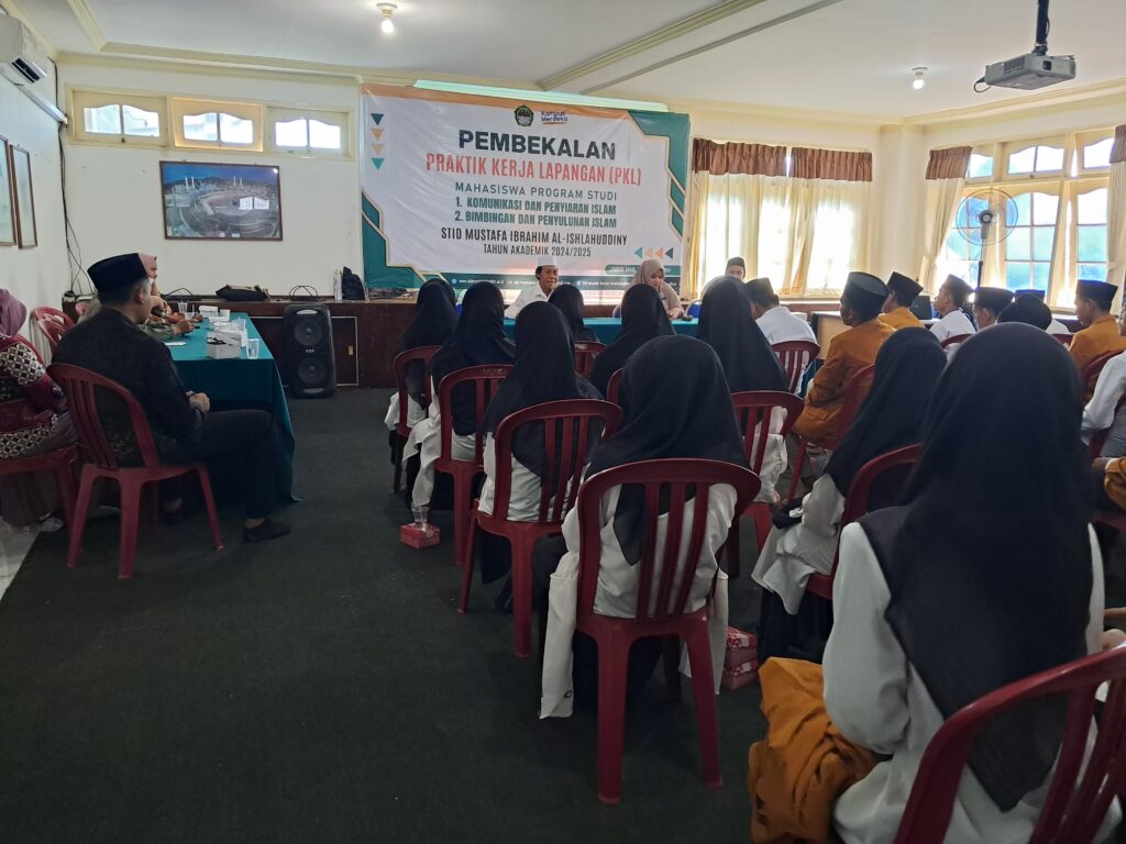 Rabu, (11/09/2024), STID Mustafa Ibrahim Al-Ishlahuddiny Prodi Komunikasi dan Penyiaran Islam dan Prodi Bimbingan dan Penyuluhan Islam telah melaksanakan pembekalan magang atau yang biasa disebut Praktik Kerja Lapangan (PKL) mahasiswa peserta magang tahun 2024. Tujuan dilaksanakannya pembekalan ini adalah untuk memberikan pengetahuan kepada mahasiswa, seperti tugas dan kewajibannya selama Praktik Kerja Lapangan (PKL), tata krama, sopan santun, dan arahan menganai apa yang harus dilakukan ketika PKL/magang agar tidak keluar dari jalur kejurusan. Kegiatan ini dihadiri oleh seluruh mahasiswa yang berjumlah sebanyak 60 orang.