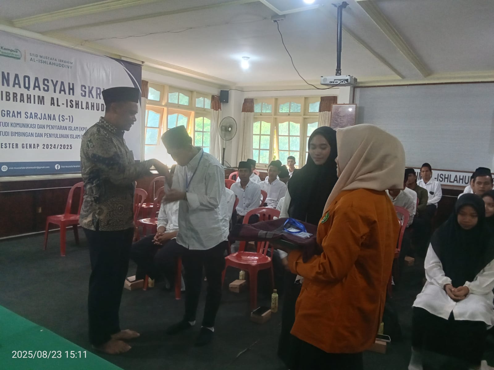 Setelah sesi materi, rangkaian kegiatan dilanjutkan dengan pengenalan organisasi kemahasiswaan di lingkungan STID Mustafa Ibrahim Al-Ishlahuddiny Kediri. Agenda ini bertujuan untuk memperkenalkan berbagai wadah pengembangan minat, bakat, serta kepemimpinan mahasiswa, sekaligus mendorong mereka agar aktif dalam kegiatan kampus. Menariknya, kegiatan PBAK 2025 ditutup dengan suasana meriah melalui berbagai acara hiburan, games, serta pembagian hadiah. Kegiatan penutup ini menjadi momen kebersamaan yang mempererat hubungan antar mahasiswa baru, panitia, dan sivitas akademika. Dengan berakhirnya kegiatan pada 24 Agustus 2025, PBAK 2025 diharapkan menjadi pijakan awal yang kuat bagi mahasiswa baru. Kehadiran 57 mahasiswa ini membawa semangat baru bagi STID Mustafa Ibrahim Al-Ishlahuddiny Kediri untuk terus melahirkan generasi dakwah yang berintegritas, berilmu, dan siap mengabdi bagi umat.
