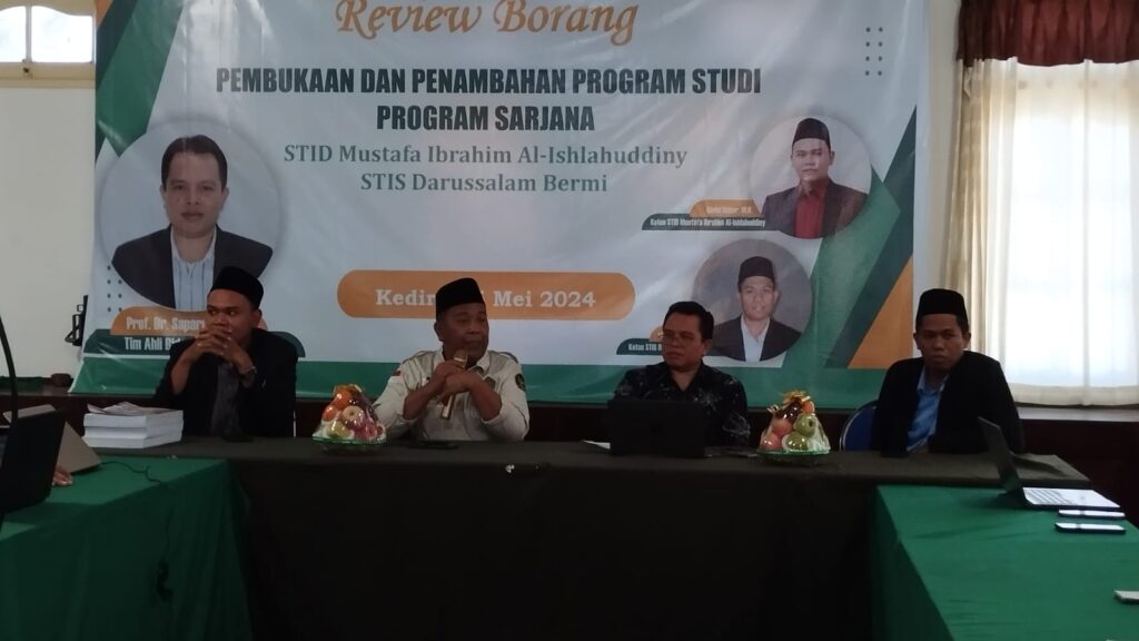 Lombok Barat, 15-05-2024, STID Mustafa Ibrahim Al-Ishlahuddiny menyelenggarakan Review Borang dalam rangka Pembukaan dan Penambahan Program Studi  Baru Program Sarjana (S-1) yang dihadiri oleh Prof. Dr. Saparudin, M.Ag, Tim Ahli Akreditasi Kopertais XIV sekaligus sebagai Asesor LAMDIK,  dan  Prof. Dr. H. Nazar Naamy, M.Si Sekretaris Kopertais XIV Mataram.