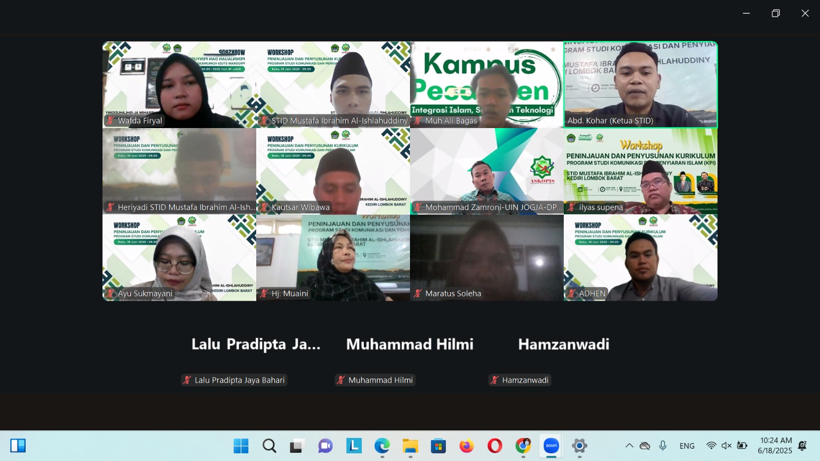 Lombok Barat, 18/06/2025 STID Mustafa Ibrahim Selenggarakan Workshop Peninjauan dan Penyusuan Kurikulum Program Studi Komunikasi dan Penyiaran Islam secara Online melalui ZOOM Metting