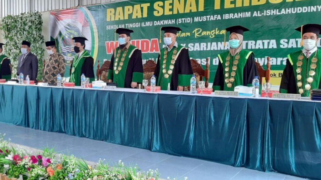 Kediri Lombok Barat – Pada hari Sabtu tanggal 23 januari 2021 telah dilaksanakan Wisuda Sarjana Program Strata I (S-1) periode II Tahun 2020 STID Mustafa Ibrahim Al-Islahuddiny Kediri Lombok Barat. Acara wisuda sarjana yang meluluskan 52 orang wisudawan pada program studi Komunikasi dan Penyiaran Islam (KPI) dilaksanakan di Aula Serbaguna Pondok Pesantren Al-Islahuddiny Kediri Lombok Barat dihadiri oleh Sekretaris Kopertais Wilayah XIV Mataram, Dr. H. Nazar Naamy, M.Si. dan para keluarga wisudawan.